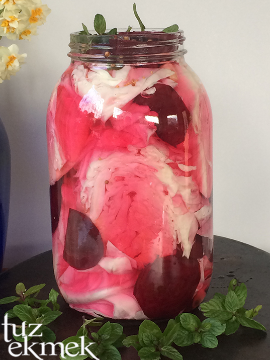 Fotoğrafların bir kaçı ilk yaptığım kırmızı pancarlı turşudan.
