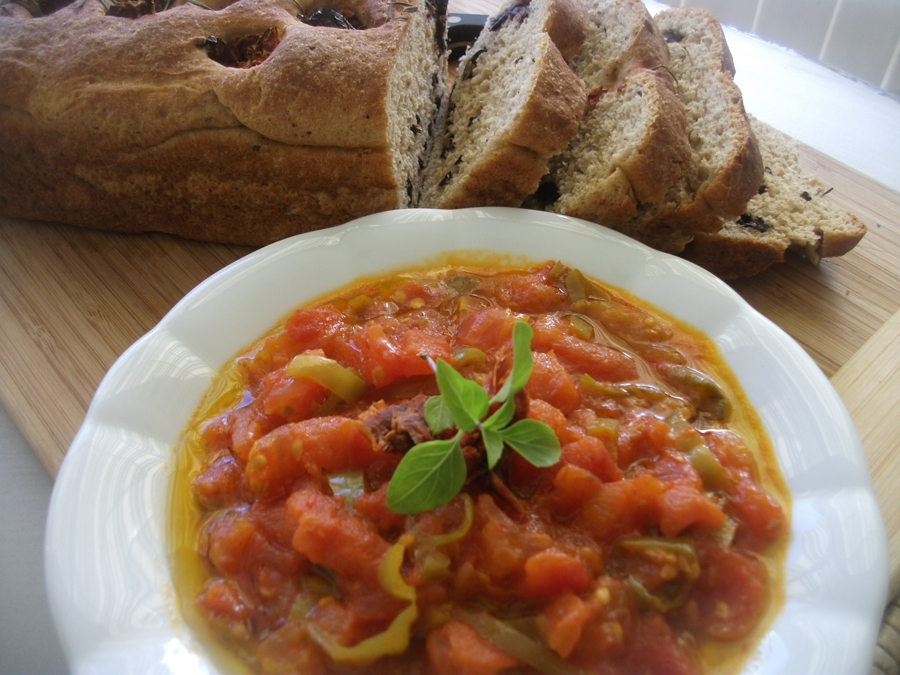 Adana nın meşhuur (tabi kendi içersinde :)) bir yemeği olan ”Domates silkmesi” isimli yemeğine benziyor. Sözünü ettiğim yöresel tat yemekte kahvaltıda yenir bolca sayılabilinecek Soğan ve Biberler yağda sotelenip kokuları miisss durumda iken bolca küp küp doğranmış domatesler coss sesi ile birlikte tencereye atılır ve üçü birlikte tıkırdar ardından demlenip ılınınca sofraya gelir tadınada doyum olmaz …