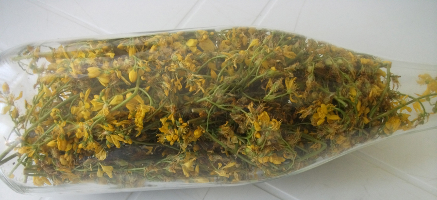 Kantarondan şifa bulmak için yapılması gereken ise bu sarı veya kızıl çiçekleri mevsiminde toplayıp (mahalli pazarlarda satılıyor) şişelere koyarak üzerine iyi kalite zeytinyağı doldurup daima güneş gören bir yerde ara sıra sallayarak renginin kızıla dönmesini beklemek. Bu sürenin sonunda kötü kokmayan bir sıvı yağ elde ediliyor. Özellikle ağrılara iyi geldiği bizzat test edilmiştir.
