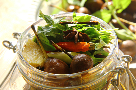 Sterilize edilmiş kavanozun dibine sarımsak, nanenin yarısı ve ahlatlar yarıya kadar doldurulur. Ara kata üzüm salkımı bırakılır ve üzeri kalan ahlatlarla tamamlanır.