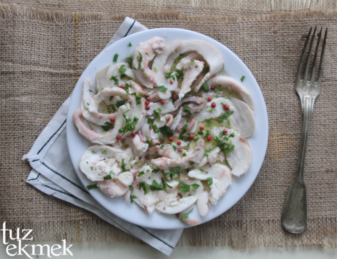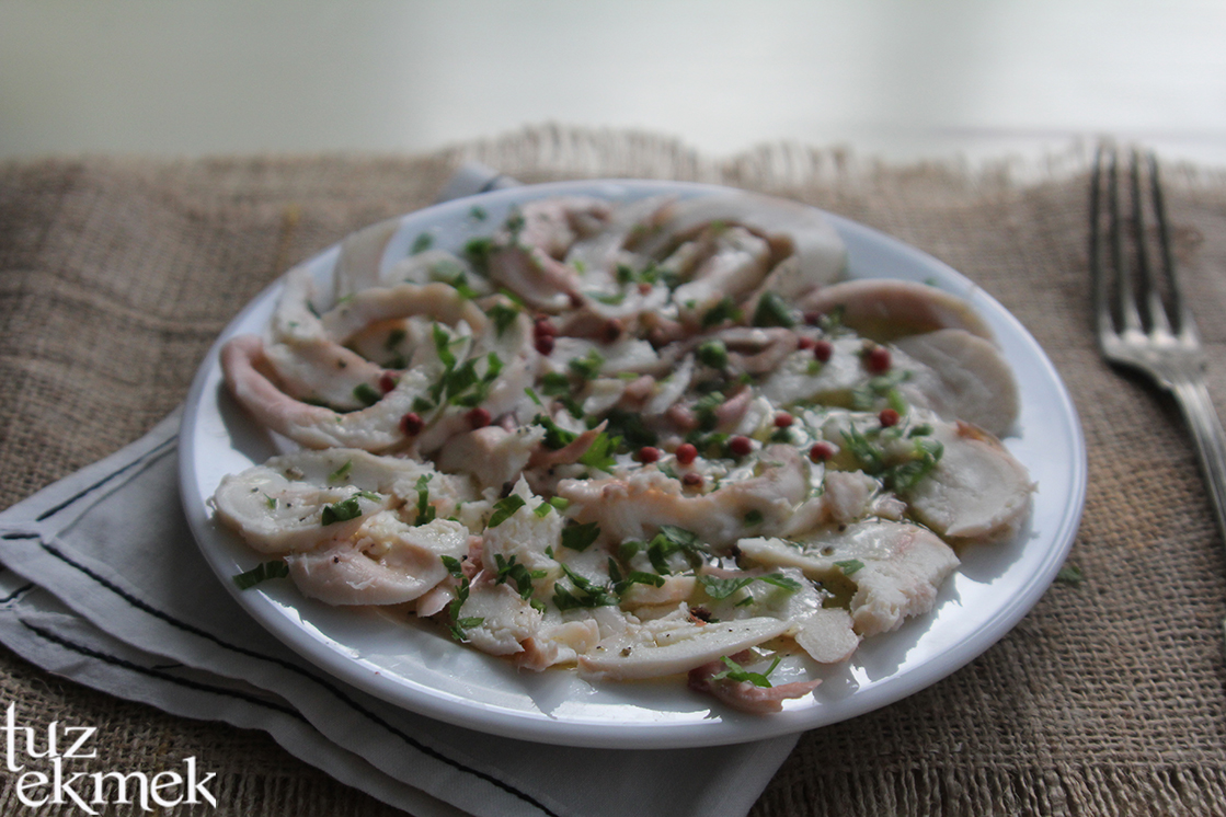 Niyetim önce haşlayıp, limon zeytinyağı diye… Biraz bakınca carpaccioyo yapmaya karar verdim. O gün çok yoğun olduğum için aşamaları fotoğraflayamadım fakat dilim döndüğünce anlatmaya çalıştım.