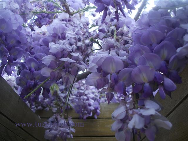 Bahar bitmeden üzerindeki çiçekleri artık dökülmüş olan mor salkımların bir pozu…