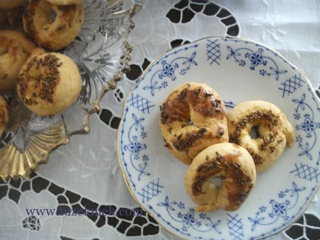 Üzerine yumurta sarısı sürülür, anasona batırılır. 180 derecede önceden ısıtılmış fırında pişirilir.