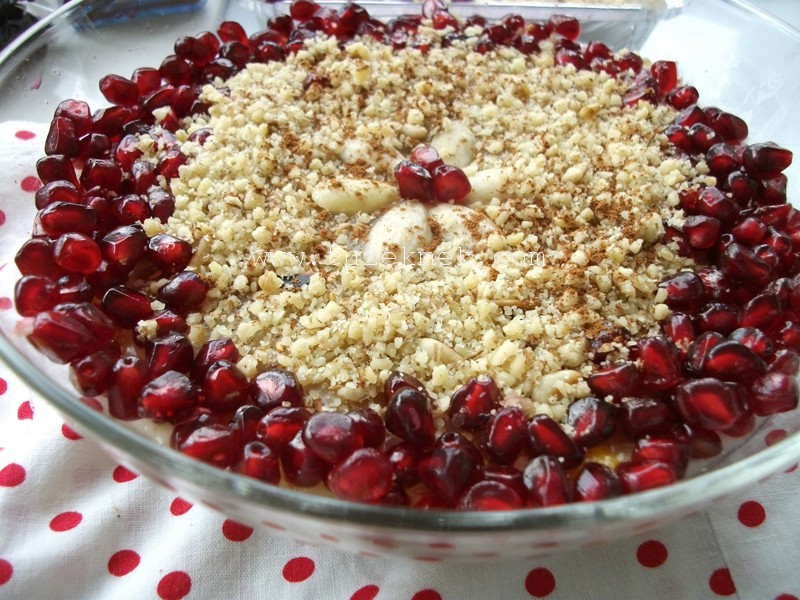En yakışan süslemesi nar olan, evlerimizde hiç olmazsa senede bir kere yapılan bu tatlının tam zamanıdır deyip, hatta biraz da abartarak yaptım ki eşle dostla, komşuyla bol bol paylaştık, paylaşmanın mutluluğunu yaşadık.
