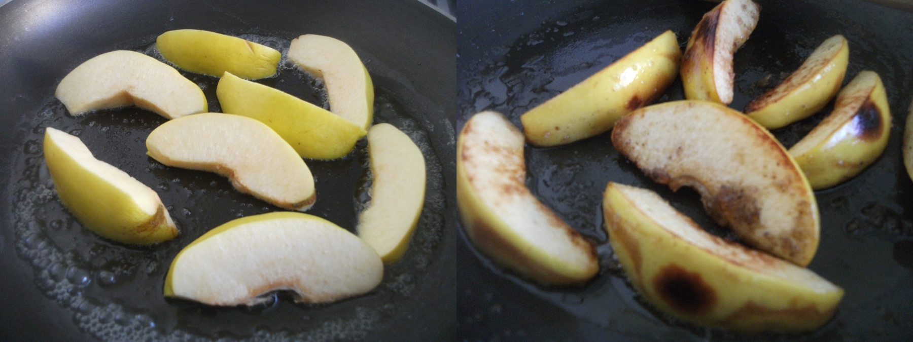 Etimiz pişerken, bir tavada tereyağını eritin ve dilimlenmiş ayvaların her iki tarafını da kızartın.