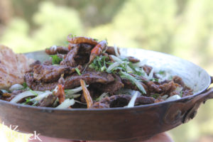 İstiridye mantar sote- Kırmızı biber salatası eşliğinde