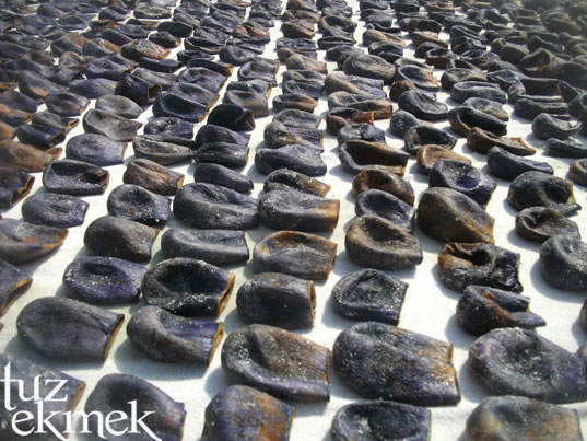 Akşamları rutubetten etkilenmesin diye bohçalanır ertesi gün tekrar açılarak kurutma işlemi tamamlanır ve 2 kat naylon torbalarda kış için beklemeye alınır. Sıcak olduğu için bez torbada saklandığı zaman sevimli:(( böcekler ziyarete gelebiliyor.