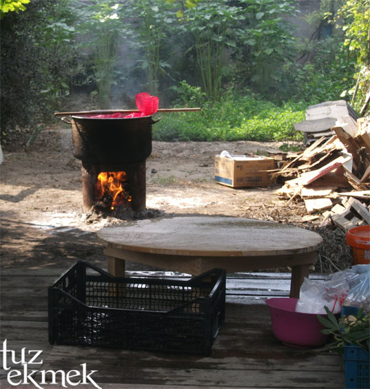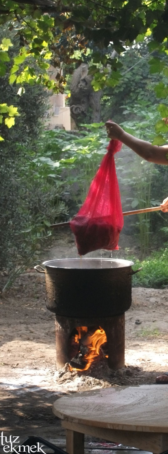 Bu arada ocak yakılıp kocaman kara kazan yerleştiriliyor ve su kaynatılır.