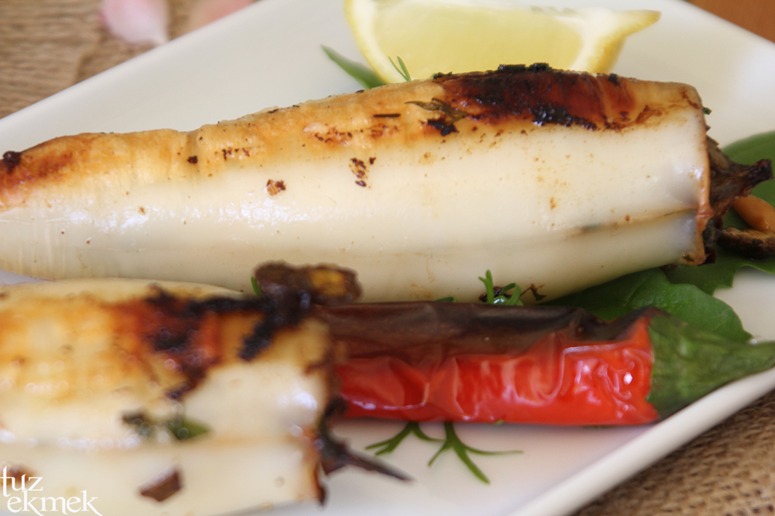 Önceden ısıtılmış 200 derece fırında üzeri yağlanmış azcık karabiber serpilmiş kalamarlar bir süre fırınlanır.