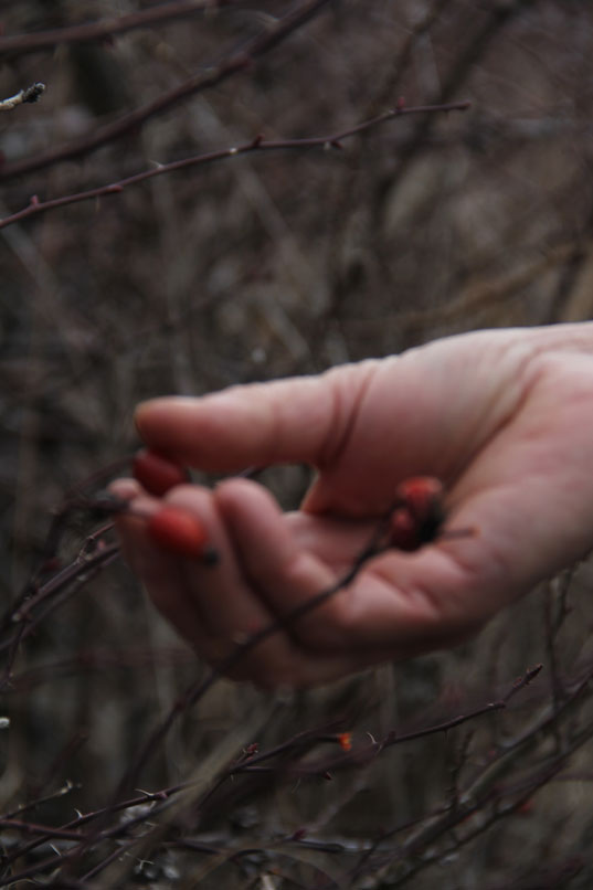 kurda kuşa yiyecek olarak kalmış kuşburnu