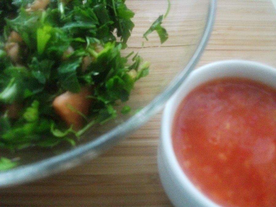 Sos için; çukur bir tabağa zeytinyağı, sirke, limon suyu, tane karabiberler, anason, rezene, çörek otu, susam ve deniz tuzu koyup karıştırılır.