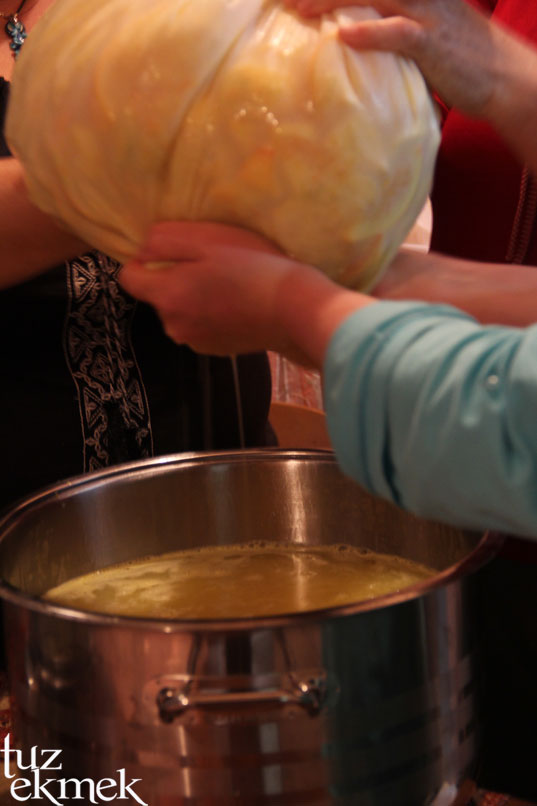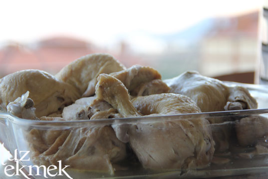 Çullama için ön hazırlık, ayıklanması gereken tavuğun soğuması bekleniyor. Pişmiş halini Özlemaki’de görebilirsiniz.
