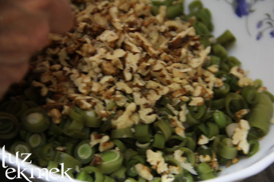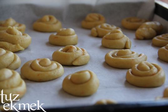 Şekil verilecek kıvama getirilir. Geleneksel şekli için ceviz kadar alınır ve tahta bir zeminde yuvarlanır ve ortadan etrafına döndürülür.