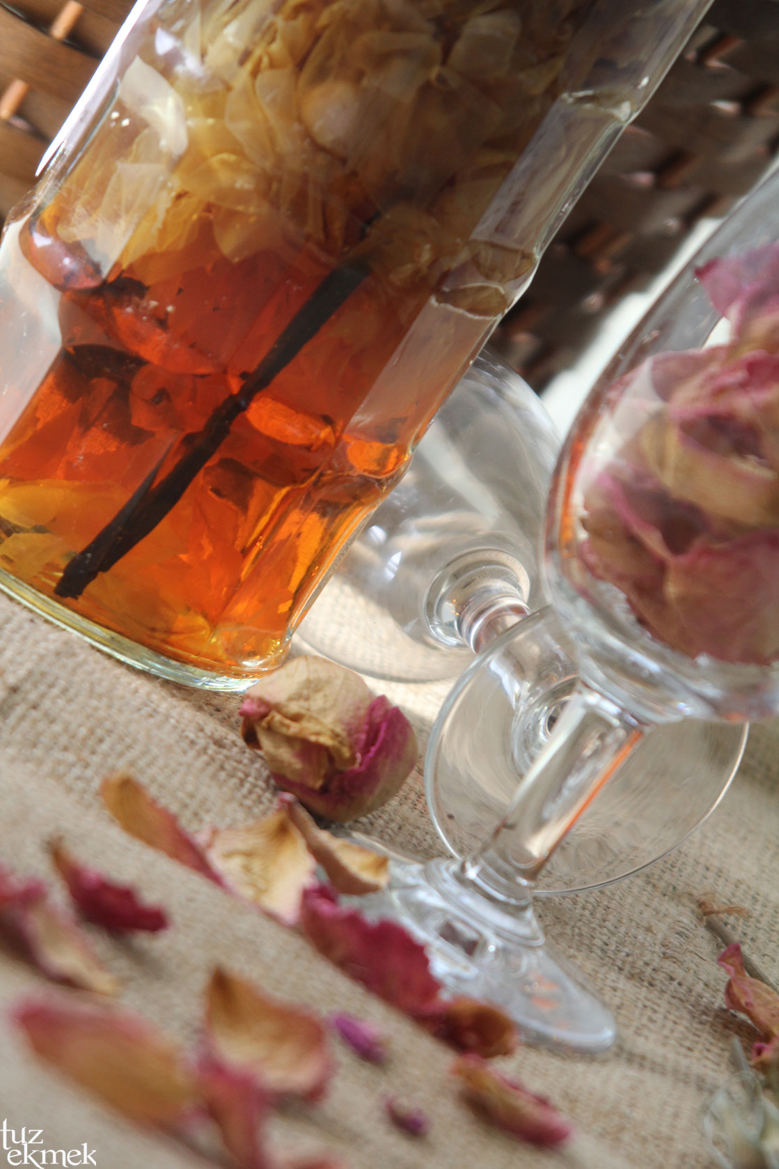 vanilyanın kokusunun gül kokusunu bastırmasından korktuğum için likörümü vanilya çubuksuz olarak yapacağım, likör olduktan sonra ise likörün bir kısmını kendi yaptığım vanilya ekstrası ile karıştıracağım, bakalım hangi hali daha çok hoşuma gidecek 🙂
