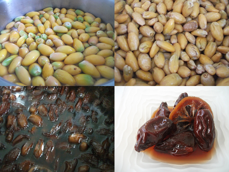 Uygun bir tencereye alınan hurmaların üzerini kapatacak kadar su ile ilave edilir ve uygun yumuşaklığa gelene kadar haşlanır, süzülür ve bir iki defa yıkanır. (Hurmalar çok yumuşamasın.)