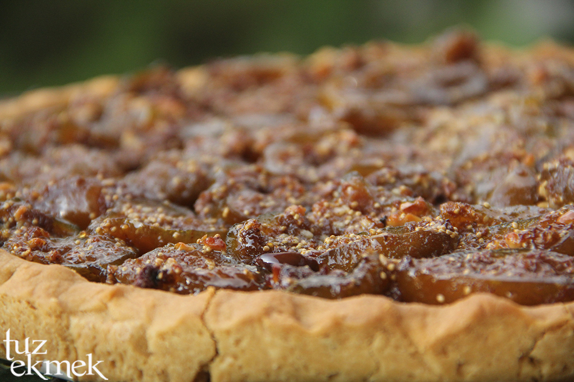 Pişen tart hamurunun üzerine hazırlanan incirler eşit miktarda dağıtıp üzerine kalan şerbeti gezdirilip tekrar fırına sürülüp bir süre daha pişirilir.