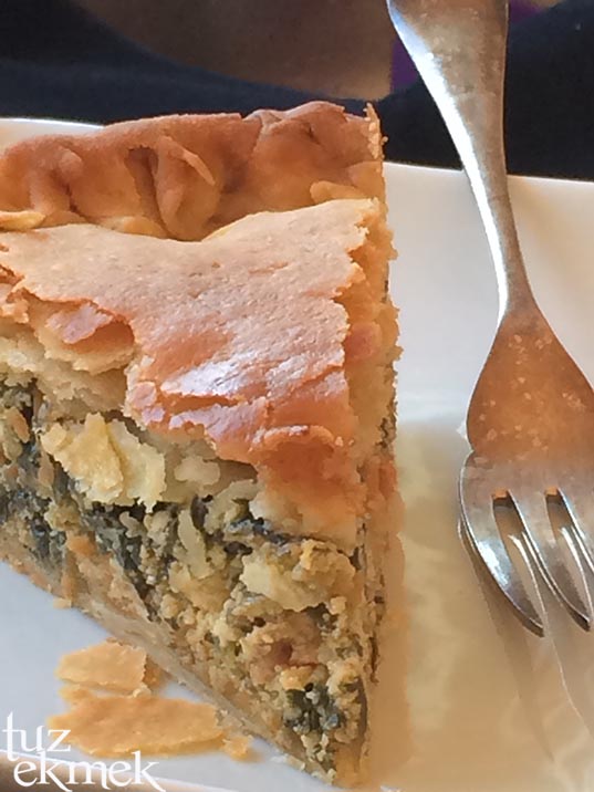 Fırın kabına ilk hazırlanan yufka tabana yayılıp yanları kenarlardan yükseltilir hatta dışına taşabilir. Üzerine hazırlanan içi yayıp üzerine biraz parmesan peyniri rendelenir. Bu turtanın gelenekselinde içine ufak çukurlar açıp kişi sayısı kadar yumurta kırılır(Bu miktarlar 5 kişilik) ,hava çok sıcak olduğu için bu aşamayı atladım. Arzu ederseniz yapabilirsiniz. Çok şık oluyor. Bir davet masasında bütün dikkatleri üzerine çeker.