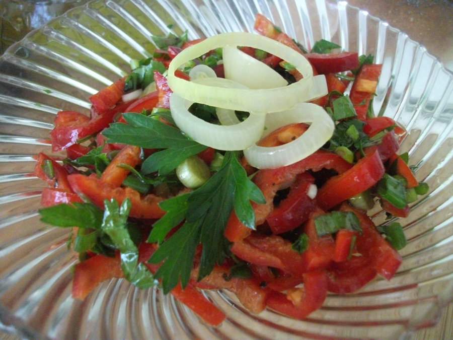 3-4 kırmızı biber( çekirdekleri temizlenip, ikiye bölünür ve 0.5 cm kadar incelikte kıyılır)