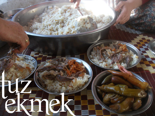 Zeytin toplarken yenen yemeğin tadı bir başka oluyor. Bir de kalabalık olunursa sanki daha da şenlikli… İyi de bu kadar kişiyi, onca yorgunluktan sonra iyi de doyurmak gerekiyor. Ya köfteler açılıyor yada kaburgalar dolduruluyor. Ev sahibimiz Fadime ve Şahizer hanımlar da bize kaburga dolması yaptı. Bundan TuzEkmek de nasibini aldı.