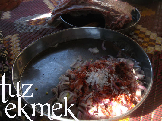 1çay kaşığı tuz- 1/4 çay kaşığı karabiber- karıştırıp etin üzerine içine sürmek için