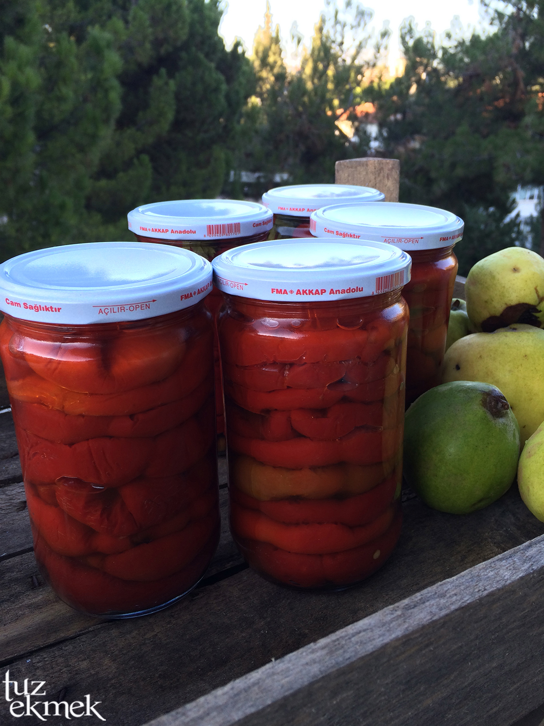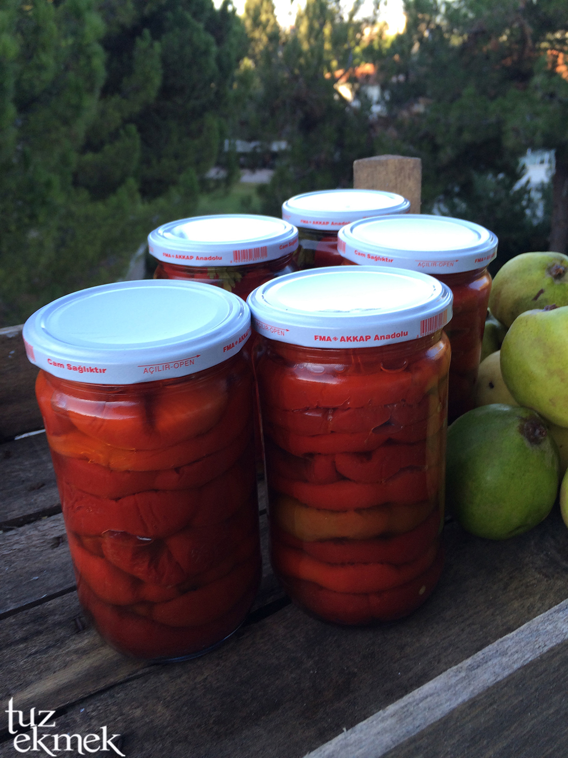 Fırından çıkan biberler önceden yıkanıp hazırlanmış kavanozlara sıcak sıcak sıkıca doldurulup havası çıkartılır. Üzerine 1 diş sarımsak, birkaç sap maydanoz bırakılıp kapatılır ve ters çevrilir. Biberin içinde oluşan su kavanoza doldurulduğunda üzerini kapatacak kadar oluyor.