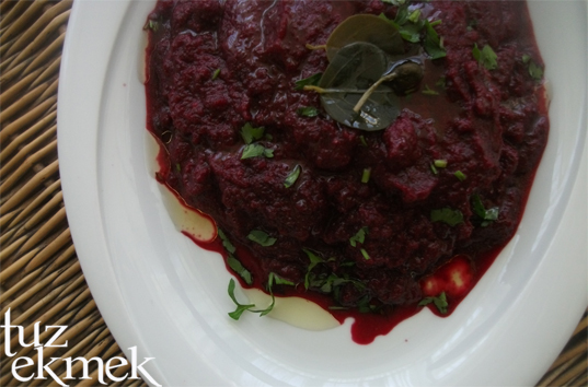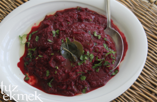 Rondoya pancar, kapari turşusu, az tuzla dövülmüş sarımsak ve baharatlar ilave edilir ve püre gibi olana kadar çekilir. Üzerine uygun miktarda zeytinyağı ve sirkeler ilave edilip karıştılır.