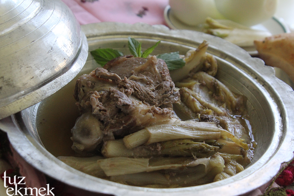 Kenger Meftunesi tarifi Kenger meftunesi nasıl yapılır? Sumak Ağartması tarifi Sumak Ağartması nasıl yapılır? Bazı bahar yemeklerini zamanı geçmeden yapmak lazım. Kenger, kökünden sakızı yapılan dikenli bir ot ama yurdum insanı baharda yeşeren bu tazecik kökleri bir bir sökmüş, uğraşıp didinip yemeğini yapmış ve ona da meftun olmuş. Sevgili Tülay İlter Sunarın hatırlattığı meftunesini, kengeri Salı pazarında bulunca dayanamayıp yaptım ve vurulduk, meftun olduk:)) Malzemeler 1 kg kenger 500 gr kuzu kuşbaşı ( Kemikli büyük parça, kuzu eti kullandım.) 5-6 tane arpacık soğan ya da 1 orta boy soğan 2 diş sarımsak ( Bütün olarak) 3 yemek kaşığı zeytinyağı 2 yemek kaşığı tereyağı 1 yemek kaşığı salça ( isteğe bağlı) Sumak Ağartması için; Malzemeler 1 çay bardağı tane sumak 2 çay bardağı içme suyu 1 yumurta Yapılışı Kengerler dikenleri kesilip, kök kısmındaki dış yaprakları ve sert kısımlar alınarak temizlenir. Dikenler için mutfak makası kullanılabilir. Derin bir kapta tuzlu su ile