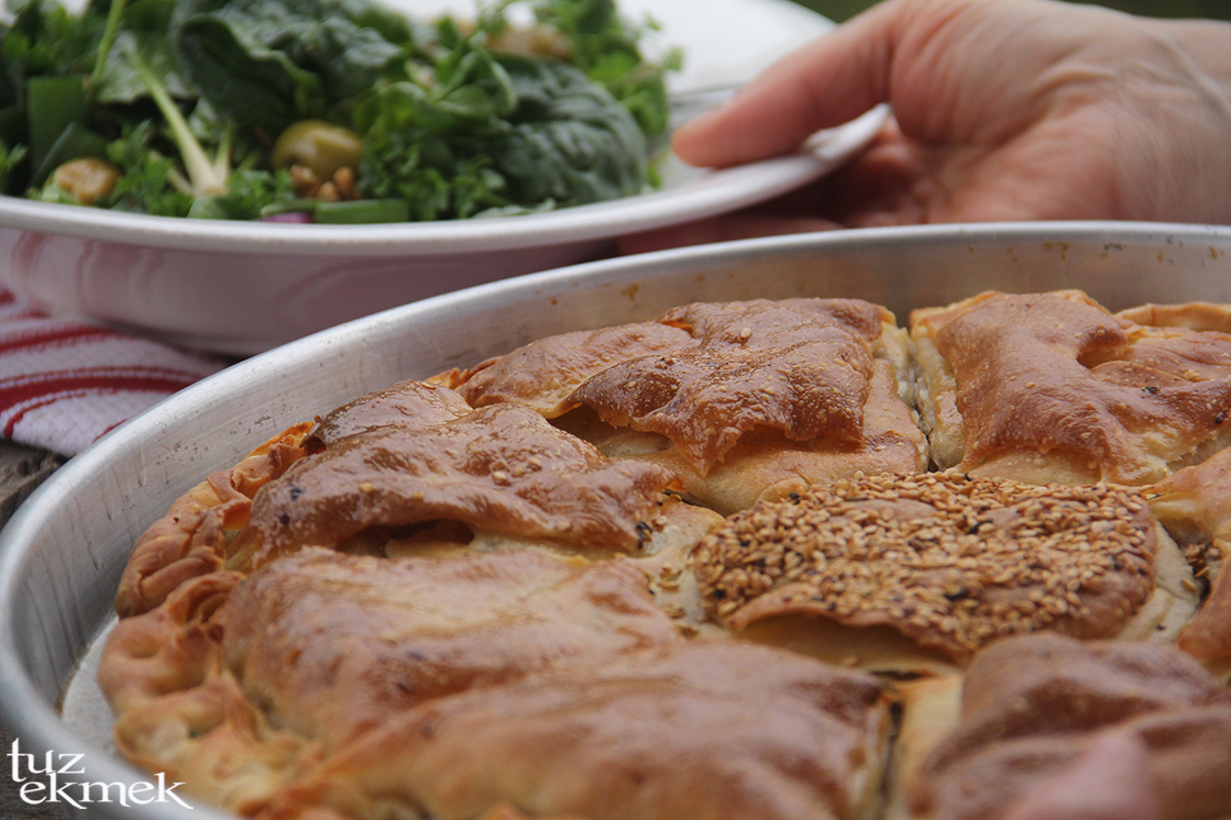 Arnavut Böreği tarifi Arnavut Böreği nasıl yapılır? Bilecik’ te mevsiminde olgunlaşan pırasa toplanıp, tatlanması için çukurlara gömülüyor. Adı da “gömü pırasa” diye geçiyor. Denilen söz yerini buluyor pek bir lezzetli oluyor yemekleri, börekler… Arnavut böreğini ne zamandır yapmak istiyordum. Bu böreğin olmaz şartı pırasa. Ama uyarlamayı evin damak tadına göre uyarladım. Tercih sizin. Böreği daha kalın isterseniz tepsiyi küçük tutabilirsiniz fakat ince olması böreği bir kat daha lezzetli hale getiriyor. Malzemeler Hamur için; 5- 5, 5 su bardağı un 2 yemek kaşığı sirke 2 su bardağı ılık su 1 tatlı kaşığı tuz 75 gr tereyağı (ara katlara sürmek için) 1 çay bardağı zeytinyağı (ara katlara sürmek için) İç Malzemesi için; 500 gr pırasa 2 büyük soğan 200 gr kıyma 5- 6 sap maydanoz Tuz Karabiber Yenibahar Pul biber- acı 5- 6 yemek kaşığı zeytinyağı Yapılışı İç malzemeler için; pırasa, soğan ve maydanoz temizlenip yıkanır ve incecik kıyılır. Kıyma birkaç yemek