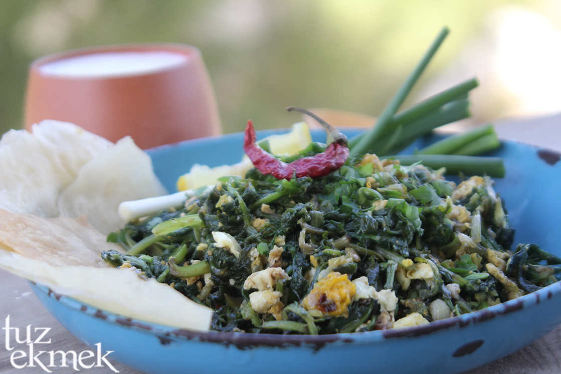 Gelincik Otu Kavurması tarifi Gelincik Otu Kavurması nasıl yapılır? Yavaştan yavaştan bahçelerde katır tırnakları, gelincik otları çıkmaya başladı. Bu defa pazarda bir çuval dolusu gelinciği bakarken gördüm. Güzel güzel… Üzerindeki erken baharın kokusuyla mutfağımı, soframızı donattı. Şükür. Malzemeler 500 gr gelincik 2 orta boy soğan 3 sap yeşil soğan 2 tane yumurta 1 Türk kahvesi fincanı zeytinyağı 1 yemek kaşığı tereyağı Zerdeçal Muskat Tuz Karabiber 1/2 limon kabuğu rendesi Yapılışı Gelincik otu sararmış ve bozulmuş olan yapraklarından temizlenip tuzlu sirkeli suda temizlenene kadar yıkanıp süzdürülür. Bu iş bayağı sürüyor:)) Büyükçe bir tavaya zeytinyağının bir kısmı dökülür ve piyazlık doğranmış soğanlar şeffaflaşana kadar kavrulur. Bu malzemenin üzerine yumurtalar kırılıp bir süre pişmesi sağlanır. Pişen yumurtalara baharatlar ilave edilip, tahta kaşıkla parçalanıp bir tabağa alınır. Tavaya kalan zeytinyağı ve irice kıyılmış gelincik bırakılıp kızgın ateşte suyunu vermeden rengini kaçırtmadan kavrulur. Üzerine biraz tuz serpilir. En son yumurta, tereyağı ilave edilip üzerine limon kabuğu