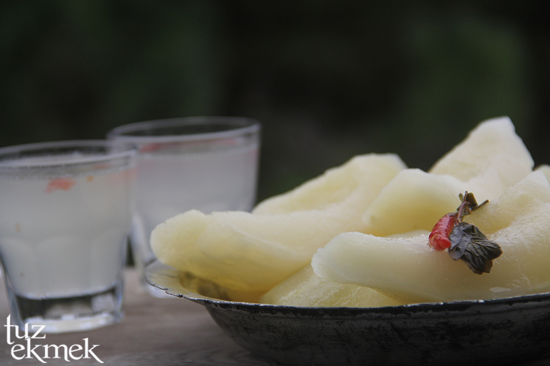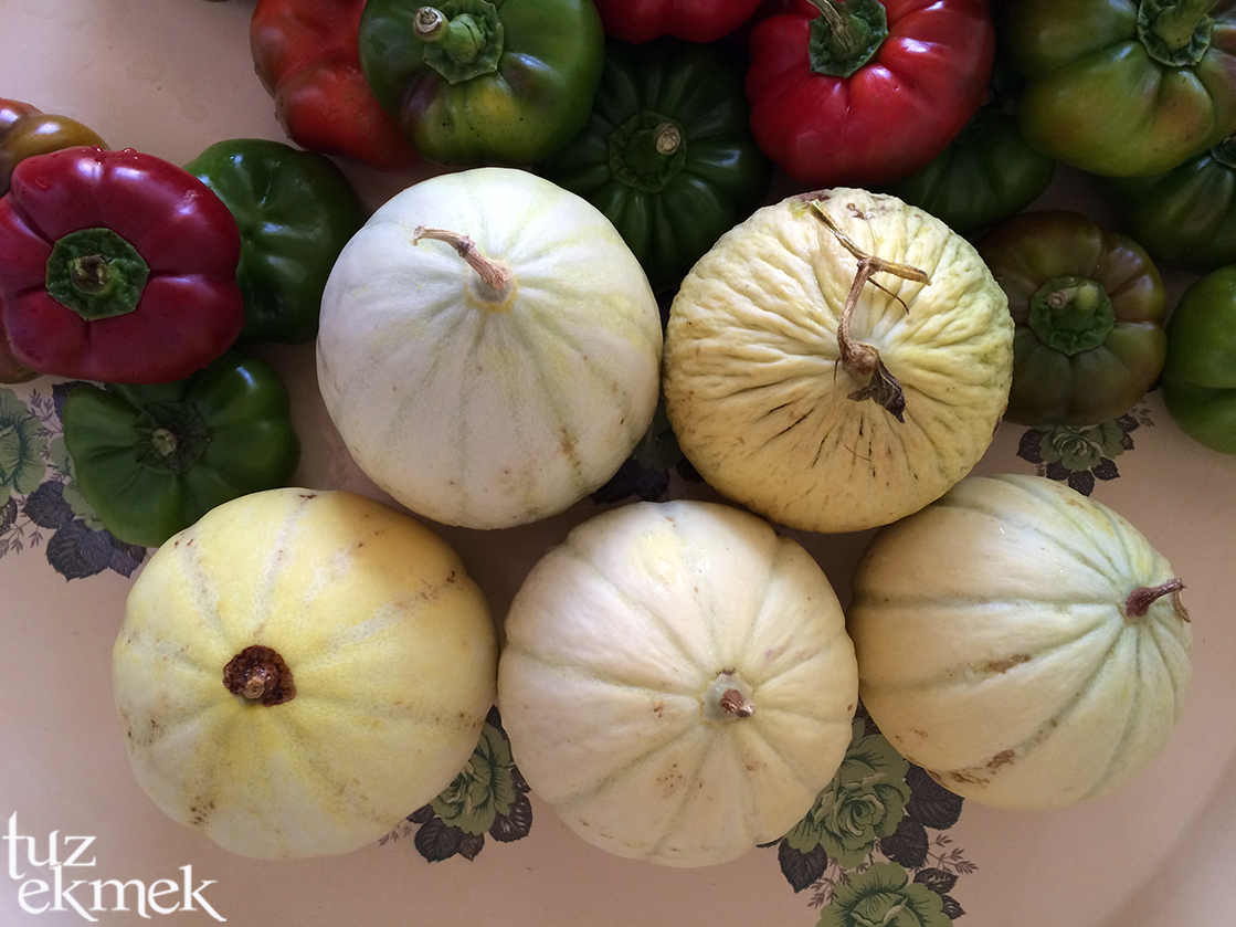 Çarşamba pazarından alınan birkaç çuval küçük kavunlar akşam yemeği yenip de ortalık biraz sakinleşince mukfaktan kap kacak tıkırtısı gelirdi. Nenemin bir işaretiydi bu. Ellerinde bıçak, kaşık leğen gibi malzemelerle önde evin hanımları, onların peşinde biz çocuklar sırayla alt kattaki kilerde serili örtülerin kenarında yerimizi alırdık. Önceden yıkanıp suları süzülen kavunlar soyulur. Soyulurken rengi kokusu hepimizin başını döndürünce bunun rengi onun kokusu güzel derken tadına baka baka içleri temizlenirdi. O günlerin olanı biteni de konuşılmadan olmazdı.