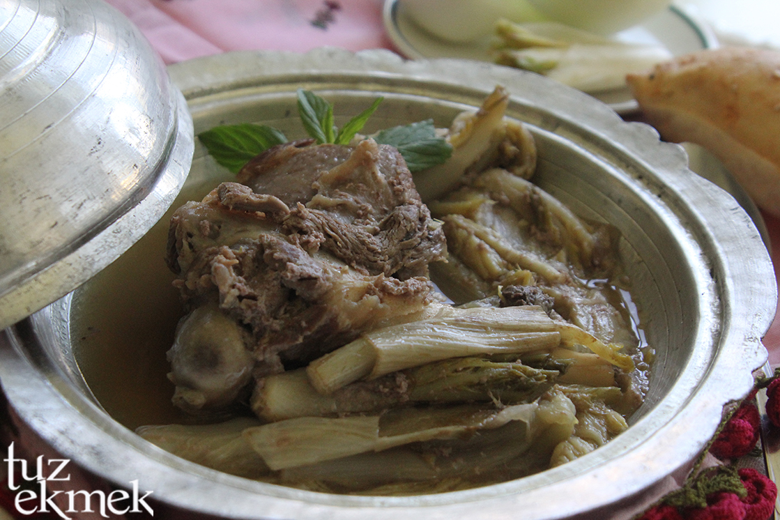 Et ve kenger pişip, son kaynamalarda yemeğin suyunu kontrol ederek sumaklı su- üzerini örtecek- ilave edilip birkaç dakika kaynatılıp ocaktan alınır.