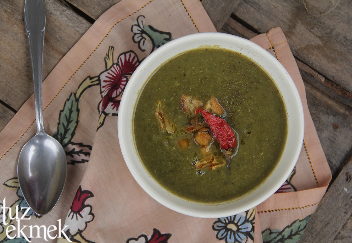 Karar çorba ama yumrusundan değil sadece yeşilleri olacak ki aromadan başımız dönsün. Öyle böyle derken yapraklar ayrı muhteşem liflerin olduğu saplar ayrı ama ne ile koyulaştırayım? Evet, kabuğu bir cevher kadar kıymetli olan nohut geldi aklımıza ve hazırda tavuk suyu da var. Hadi mutfağa.