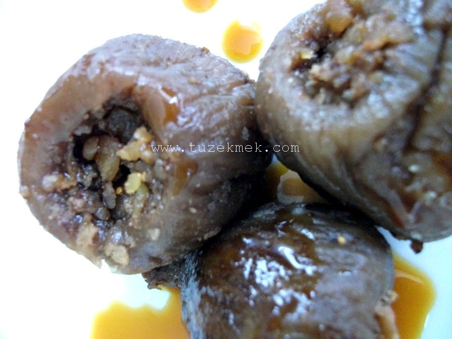 Haşlanıp suyu süzülen ve içi doldurmaya hazırlanmış incirler iç malzemesiyle doldurulur.