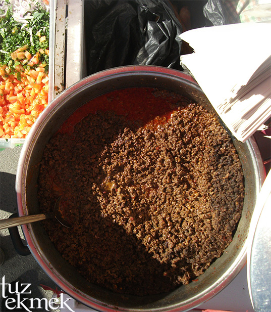 Bu kadar meyve, baharat. Karnımız acıkmış olmasın? Ciğer kavurması.