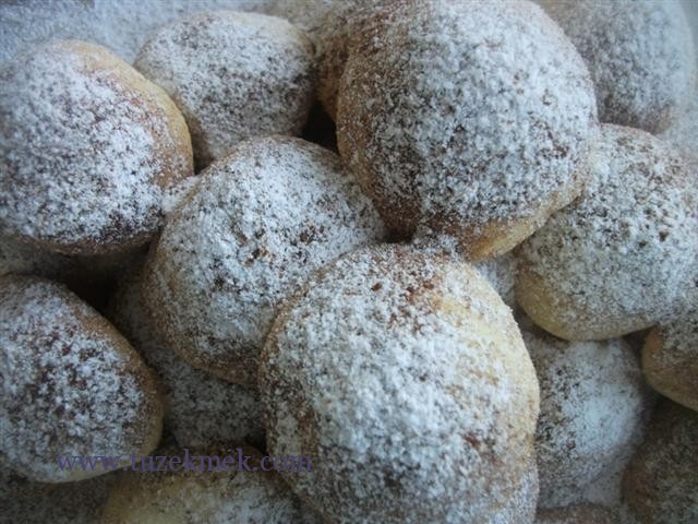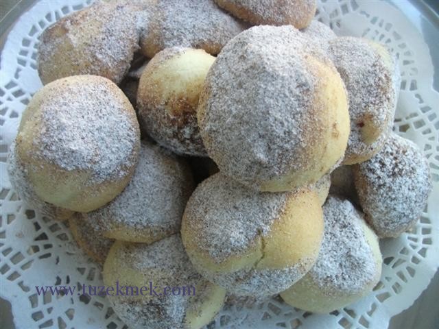 Hamuru buzdolabında bir süre dinlendirdikten sonra, cevizden biraz büyük parçalar alınıp, yuvarlanır.