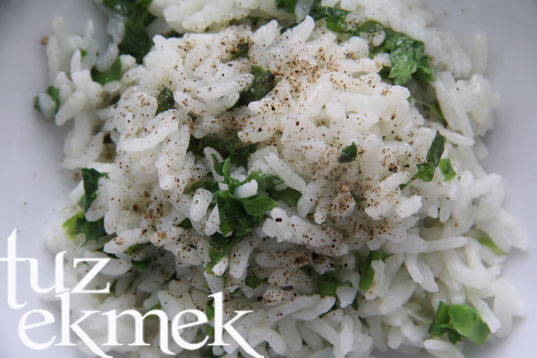 Not: Bu pilavı su teresi, hardal otu ve hatta ıspanakla bile yapabilirsiniz. Bu yemeğin yanında yanında nefis levrek tava vardı. Tarifi yakında…