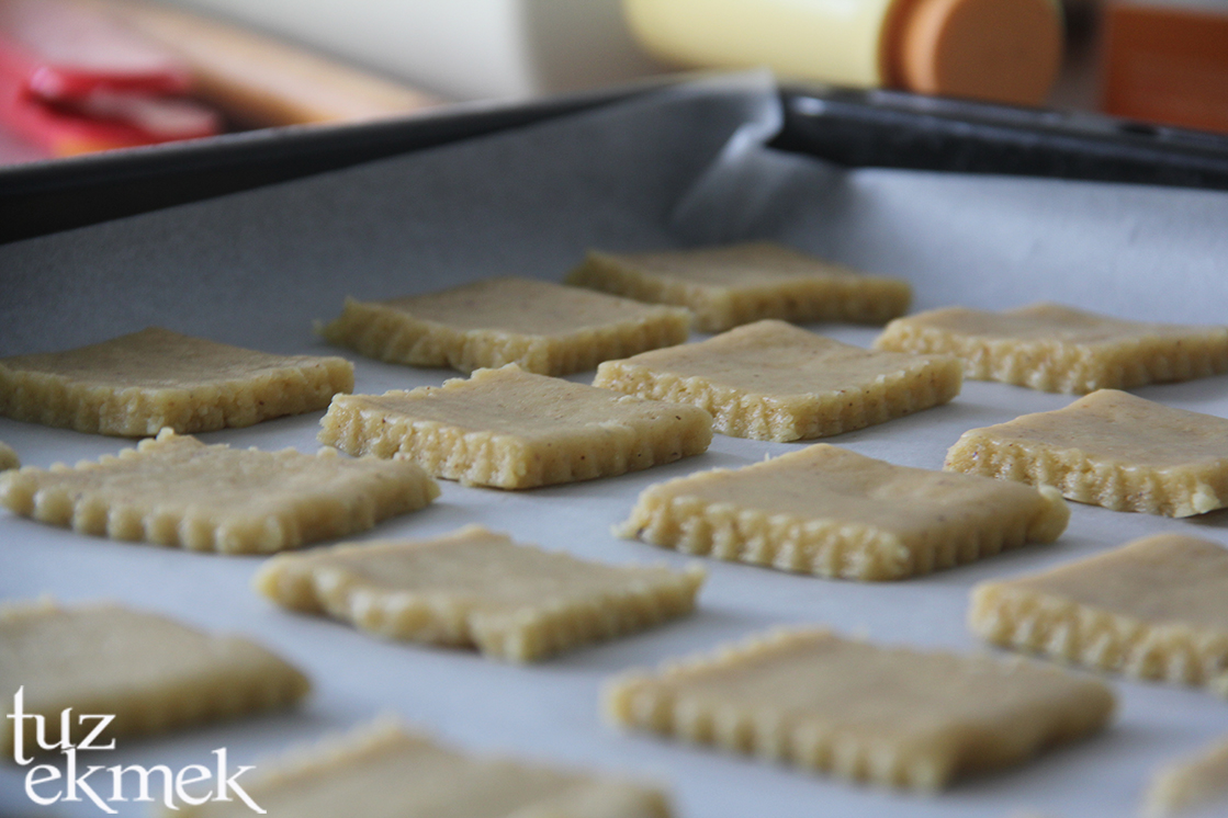 Hazırlanan kurabiyeler önceden ısıtılmış 180 derece fırında rengini koyulaştırmadan pişirin.