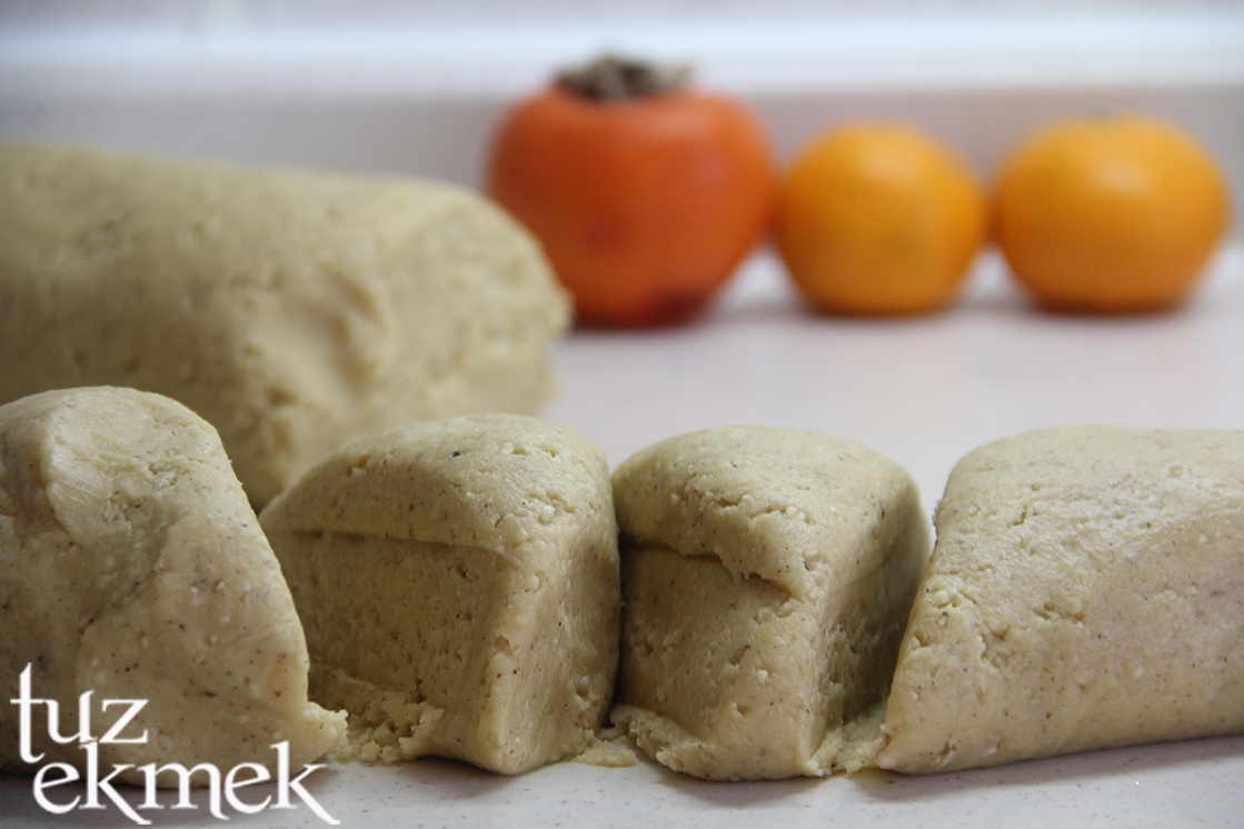 Elde ettiğiniz hamuru ikiye bölüp streç filme sarıp buzdolabında en az 2 saat bekletiniz.