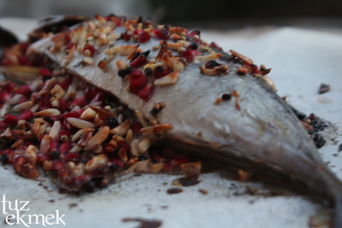 Narın mevsimi. Palamudun da en güzel zamanı sayılır deyip ikisi biraraya geliverdi. Ortaya narın ekşiliğiyle tat bulmuş bademin kıtırlığıyla birleşmiş nefis fırında balık çıktı.
