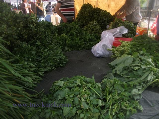 Fatmacım, teşekkür ederim.o sırada tezgahta radika, gömeç, arap saçı, ısırgan, hardal, yarpuz ve çok bilinen nane, maydanoz, yeşil soğan- sarısak ve bir de tezgahın ortasında bakla vardı.