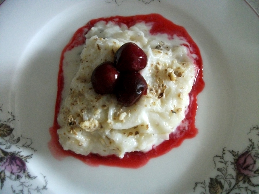 Üzerine nar tanelerini çok yakıştırırım, ama mevsimi olmadığı için vişne ile süsledim.