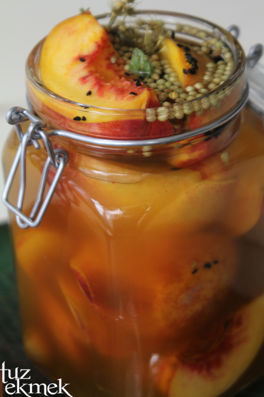 Veee… Üçlemenin sonuncusu, şeftali turşusu. Olur mu? Oldu. Hem de çok güzel oldu.