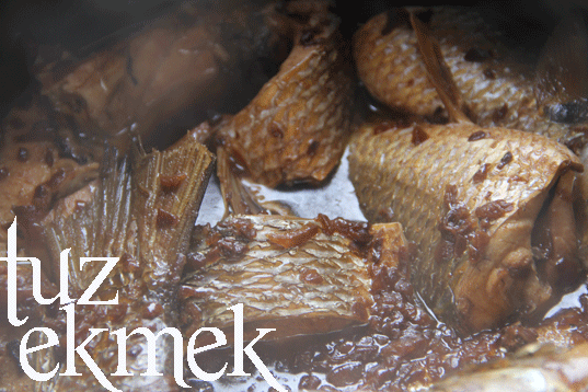 Kaynayan soğanlı suyun üzerine dilimlenmiş balıklar ilave edilir ve üzerine üzerini örtüp 3-4 parmak geçesiye sıcak su, gereken tuz ve baharatlar ilave edilir.