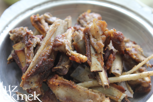 Biz bunu kemikli kavurma olarak biliriz , kurban kesildikten sonra kemikli kavurma ayrıca yapılır, daha sonra çerez gibi yerdik , özellikle sebze yemeklerinde, kuru fasulye ve nohut pişerdi, yemeğin sonunda kemikleri sıyırmak ayrı bir şölendi, bu şölen kelimesi o zamanlar da çok abartı olabilirdi şimdi yapılamayıp özlem duyulunca gerçek şölen olduğunu düşünüyorum. Elinize sağlık, Afiyet olsun.