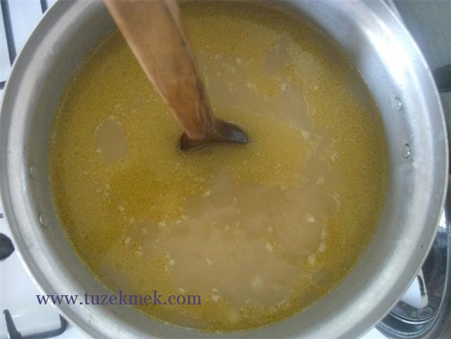 Tavuk, bir miktar geceden ıslatılmış nohut ile birlikte bir büyük tencerede üzerini örtecek kadar su ve uygun miktarda tuz ilavesiyle haşlanır. Arada üzerinde biriken kefi alınır.