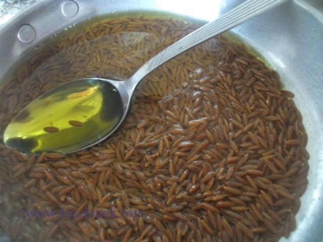 Pilav, nar gibi kızartılmış arpa şahriyeli ve nohutlu idi ve tabii ki tavuk suyu…