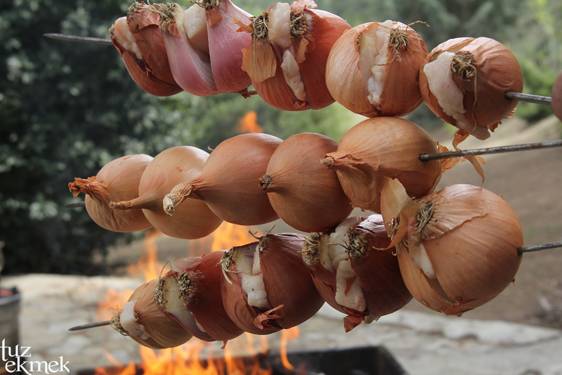 Mangal yapıldığında soğan olup yanında da kuyruk yağı varsa