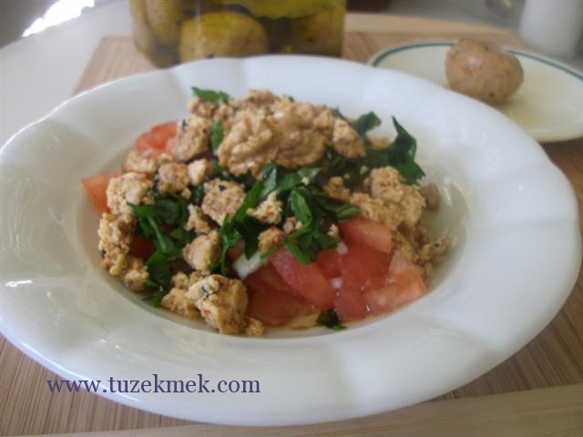 Pazardan veya marketlerden alabileceğiniz çökelek peyniri ile de yapabilirsiniz. Çökelek baharatı ve zeytinyağı ile yoğrulan bu muhteşem tadı kaçırmayın, yapın derim.