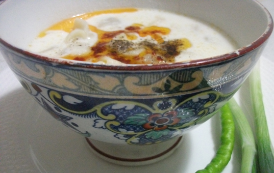 Yemeğin adı sizi yanıltmasın  mayhoş tadıyla biraz zahmetli bir çorba, fakat yanına da pek bir şey istemez. En yakışanı bir yeşillik tabağı ya da  marul salatası olabilir. Bu sulu mantı benzeri çorbayı seveceğinizi umuyorum.