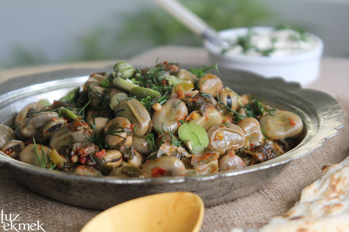 Sıcak yemeği, zeytinyağlısı ve diğerleri derken bu tarif de pazardan geldi. “Baklayı siz nasıl yaparsınız?” diye sorunca ” Kavururuz.” dedi satıcı kadın. Kavurduk biz de.